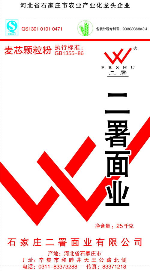 二署面業(yè)有限公司創(chuàng)建于1989年,現(xiàn)已具備日處理小麥300噸的能量,產(chǎn)品質(zhì)量穩(wěn)定,深受客戶青睞。 二署面業(yè)地理位置優(yōu)越,北靠307國道石黃高速,南鄰石德鐵路,衡井國道,交通十分方便,為貨物運輸提供保證及時運輸?shù)奶烊粭l件。產(chǎn)品運銷:黑龍江、吉林、遼寧、河北、內(nèi)蒙、陜西、山西等大中省份,贏得了廣大消費者的認可。